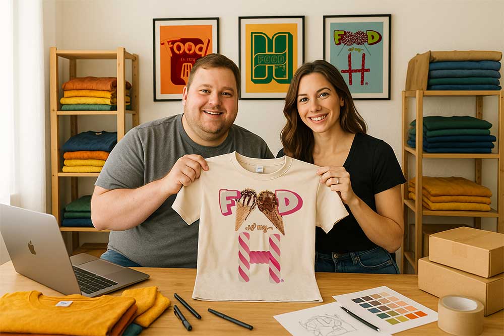 Agnes and Jack started their t-shirt shop with nothing but a small printer, a handful of blank shirts, and big dreams. Working from their living room, they spent long nights learning, failing, and trying again.